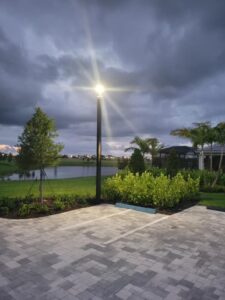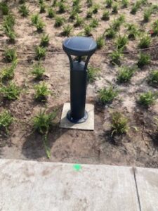 Bollards Need:⦁ Homeowners requested lighting for dark areas in the amenity center and walking paths.⦁ Preserve landscape and sightlines. Solution:⦁ Installed bollards near