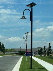 Solar Panel Top Street Light with Bell Head Fixture Need: ⦁ Street lights for a land development community. Solution: ⦁ Provided a full
